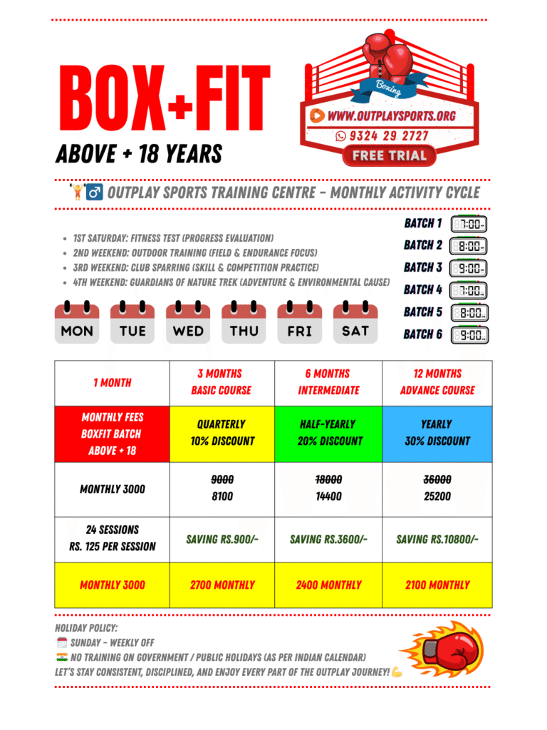 Outplay Kandivali is powered by a dedicated team of certified and experienced coaches, guiding athletes across boxing, MMA, fitness, and chessboxing.